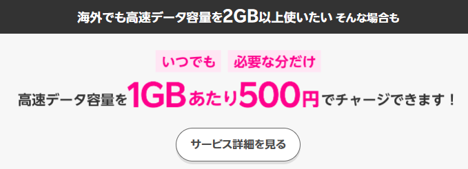 私は今回の旅行では2GB以内で収まった為、追加費用はかかりませんでした