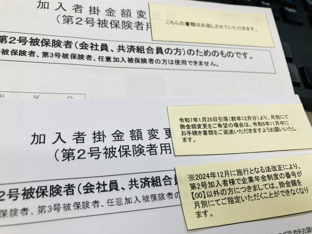 まずは申請書を印刷して、郵送して数ヶ月待って、そしてやっと拠出額の変更ができます