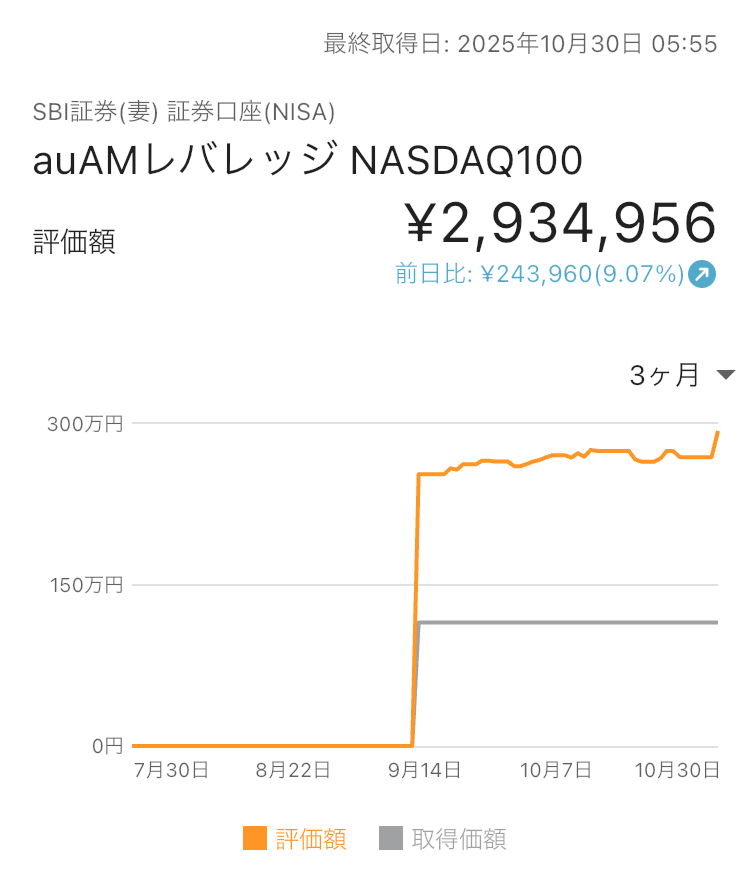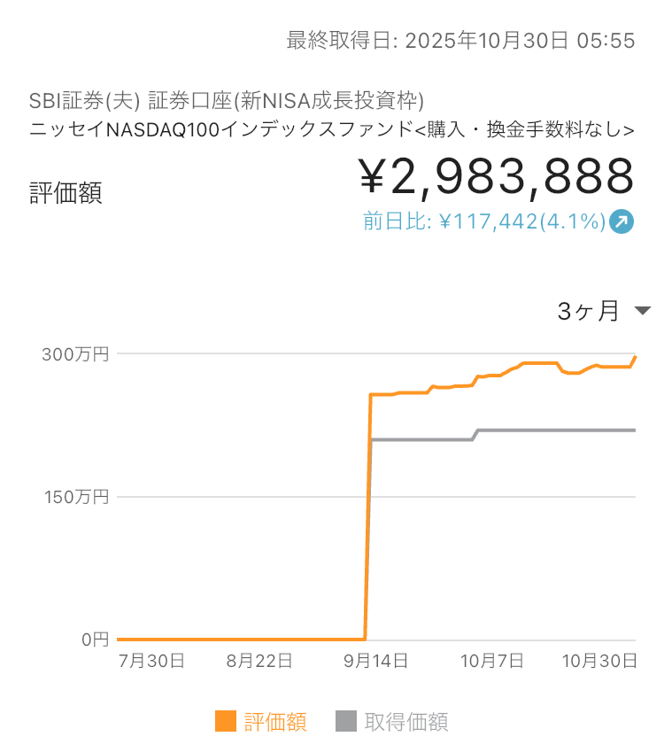 マネフォの投資信託の価額の反映は1日遅れなので、10/28夜の米国市場の出来事が、今朝の金額に反映されています