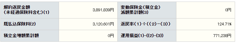 (返戻金が積立金額より少ないのは5年未満解約で取られる解約控除費用かなと推測中)