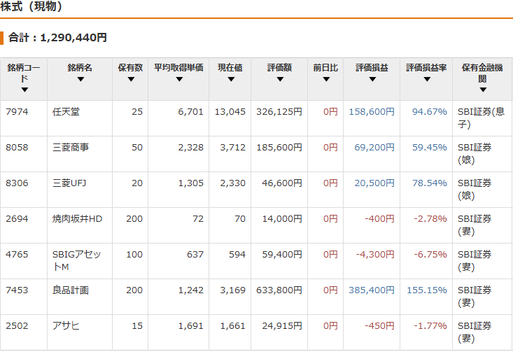 | 妻 | スポット | NISA成長 | 2502アサヒグループホールディングス㈱ | 25,357 |