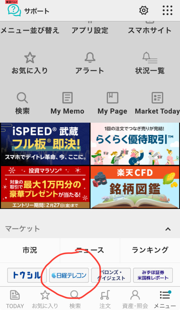 楽天証券アプリiSPEEDの日経テレコンから無料で読めるよ