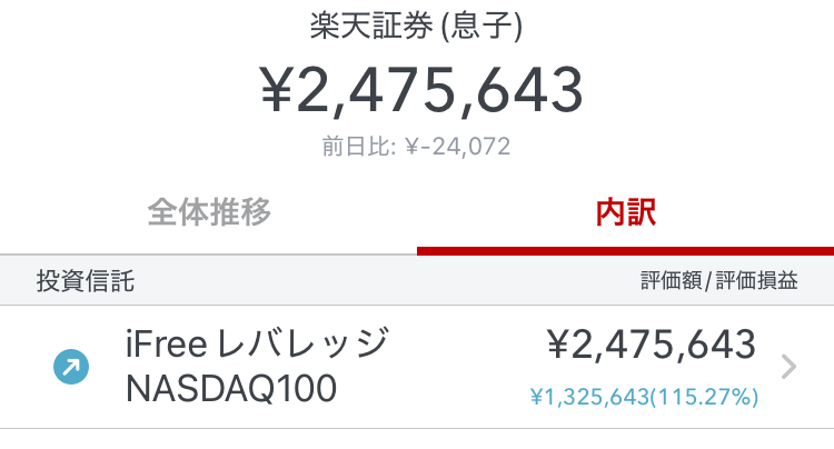 (楽天証券のiGorwアプリめっちゃ見やすいね~いいな~)