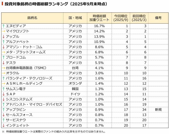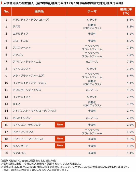 引用:一歩先いく US テック・トップ20インデックス【連動指数の銘柄入れ替えのお知らせ】