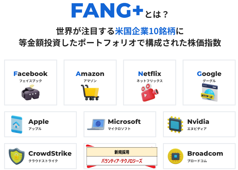 そうすると、FANG+の10銘柄はちょっと少ないんじゃないかな、今後の期待銘柄取り切れないんじゃないかなって思ってしまうわけですね