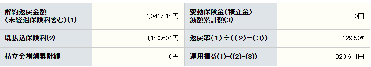 (返戻金が積立金額より少ないのは5年未満解約で取られる解約控除費用かなと推測)