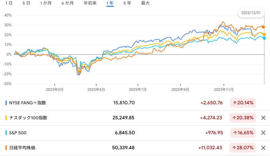 毎年こんなに何十%単位で上がったり下がったりしたら、新NISA参入勢が逃げちゃうと悪いので、たまには落ち着いた%の年があっても良いでですよ
