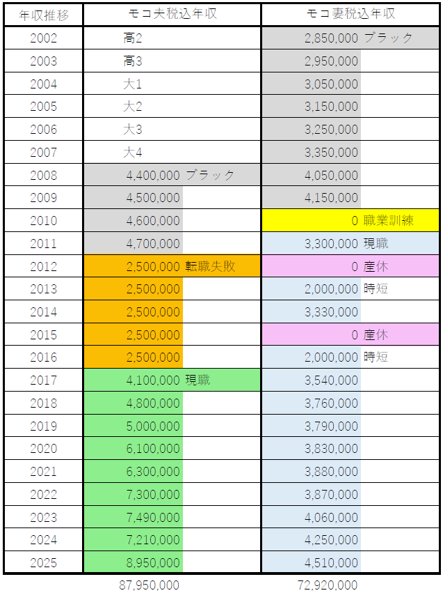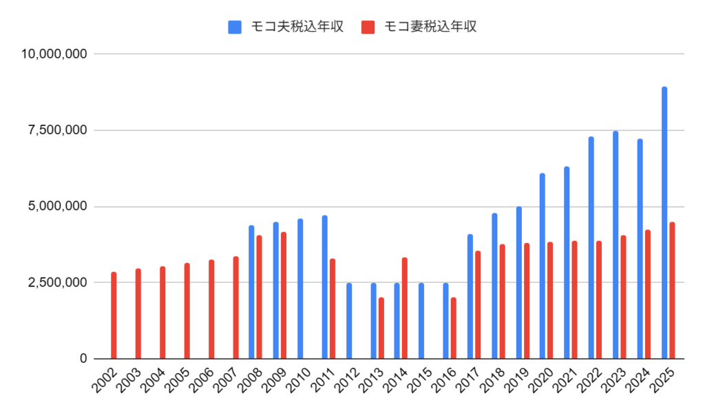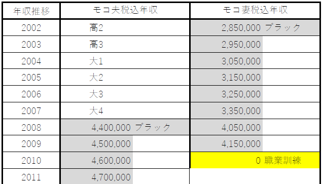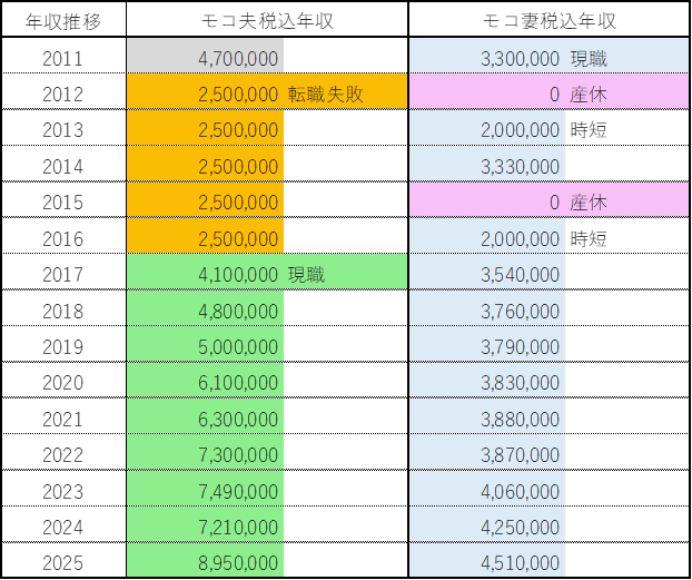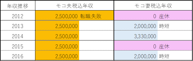 モコ夫婦年収推移~当時の状況を添えて~