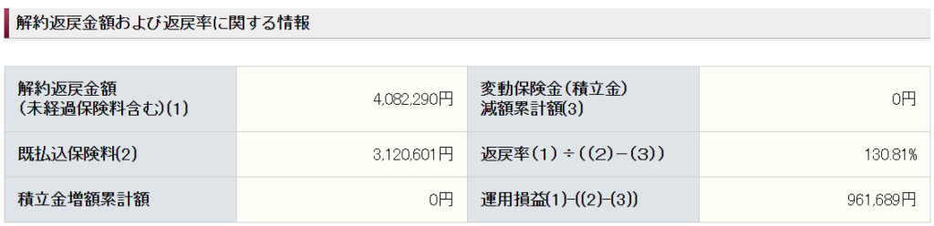 解約返戻金:4,082,290