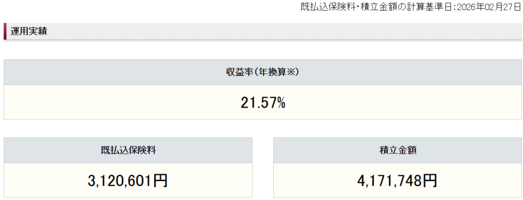 積立金額 :4,171,748(年率21.57%)