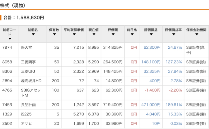 | 妻 | スポット | NISA成長 | 2502アサヒグループホールディングス㈱ | 6,834 |