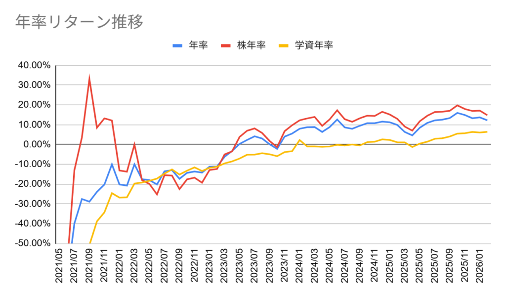 こう…グラフが安定してプラスリターンに傾いて行ってるの、いいですね