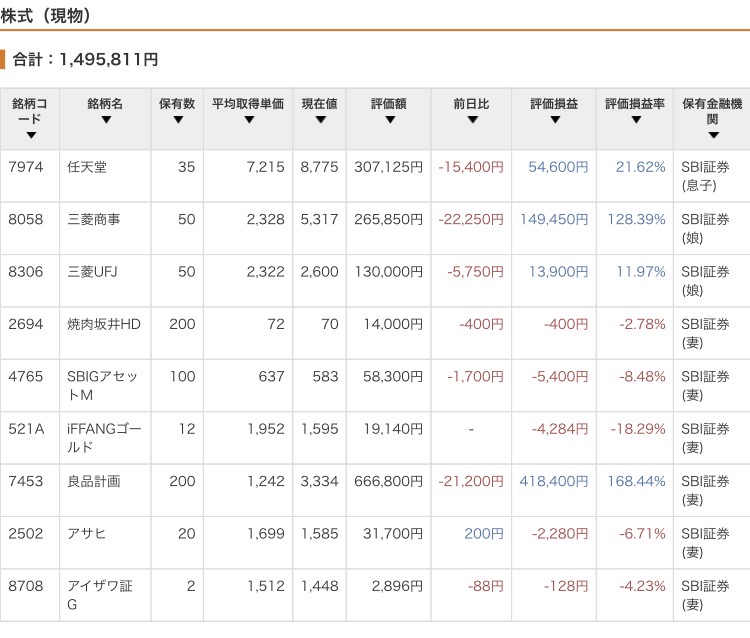妻:毎月積立+アサヒがまだ安いのでスケベ買い