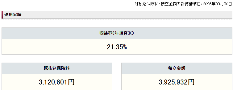 積立金額 :3,925,932(年率21.35%)