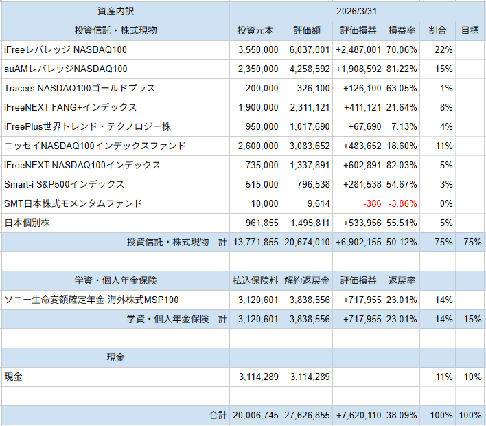 【資産公開】2026年03月モコ家ポートフォリオ【27,626k】
