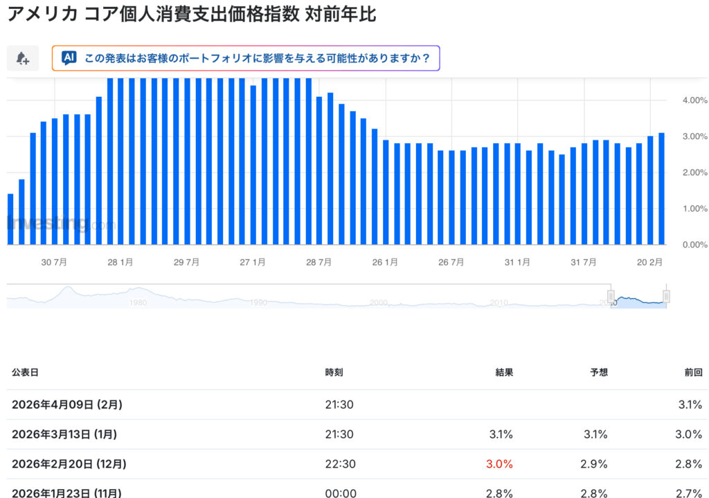 引用:アメリカ コア個人消費支出価格指数 対前年比