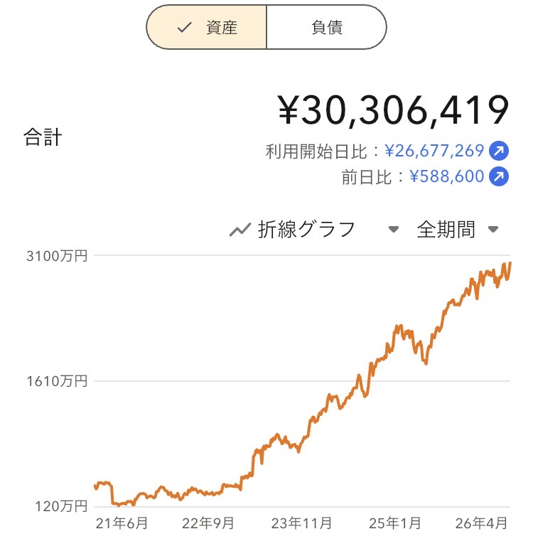 先日一瞬タッチしたのですが、クレカ引き落としですぐ切り、市場の上昇によりふたたび3000万円に届きました