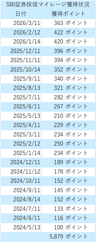 2024年から現在まで、合計5,879ポイント獲得していました!