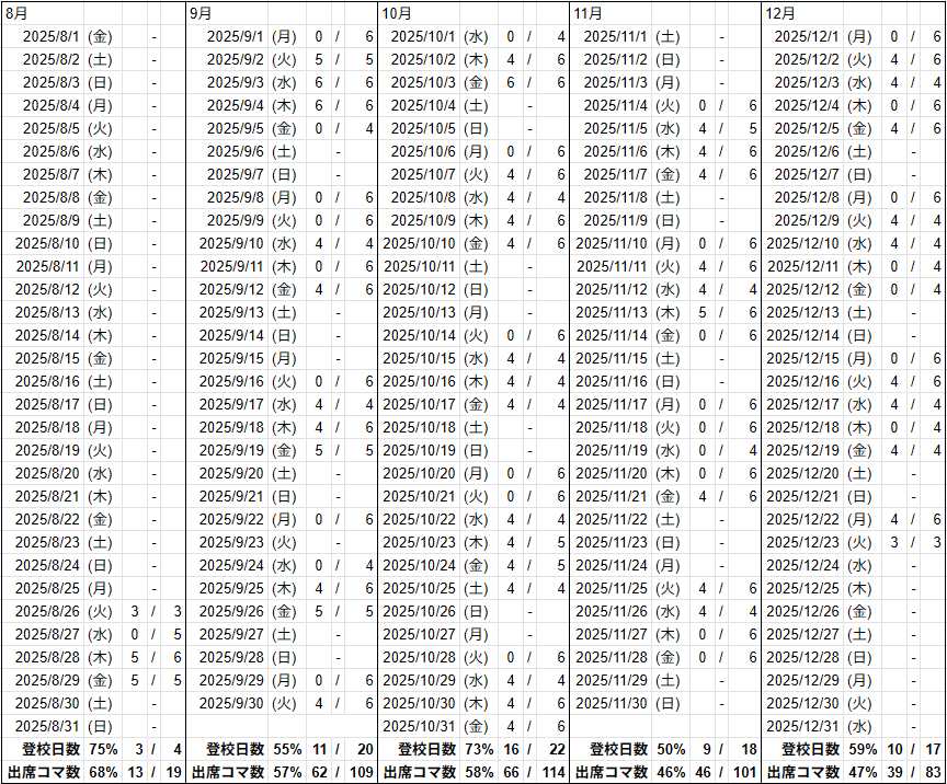 10月あたりは週4登校ができたこともあったのですが、最近は週3登校が板に付きつつあります