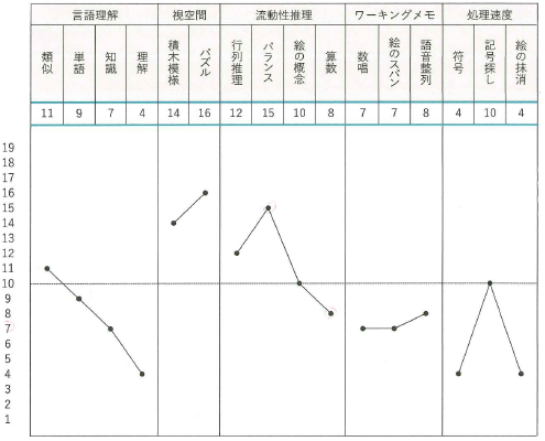 ワーキングメモリー(WMI)が82と境界知能レベルに低いです