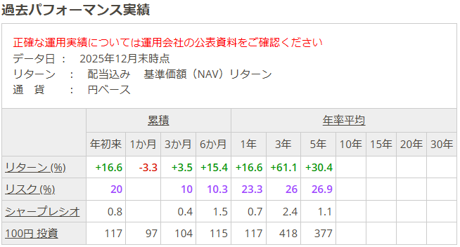 | FANG+ 配当込(円) | 期間 (年) | リスク% (標準偏差) | シャープ レシオ | 算術平均 リターン | 幾何平均 リターン |