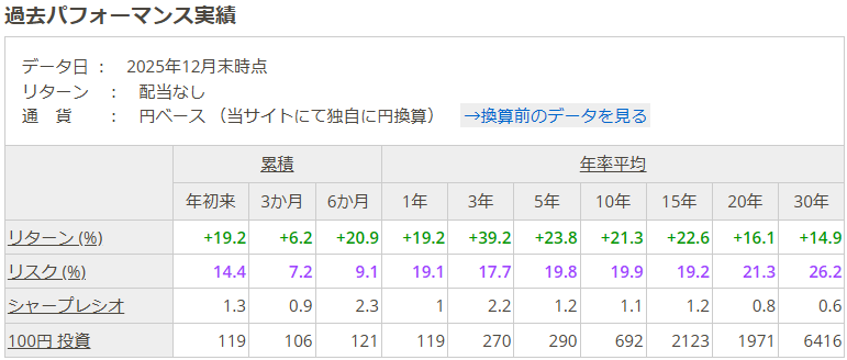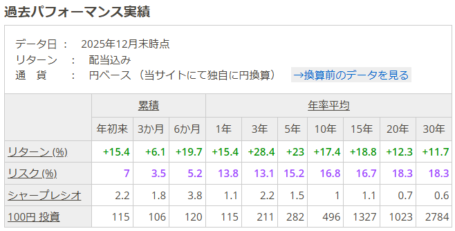 | NASDAQ100 配当無 | 30 | 26.2 | 0.6 | 14.9% | 11.46% |